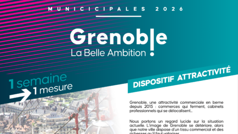 Grenoble, une attractivité commerciale en berne depuis 2015 : commerces qui ferment, cabinets professionnels qui se délocalisent…Nous portons un regard lucide sur la situation actuelle. L’image de Grenoble se détériore, alors que notre ville dispose d’un tissu commercial et des richesses qu’il faut valoriser. Nos…