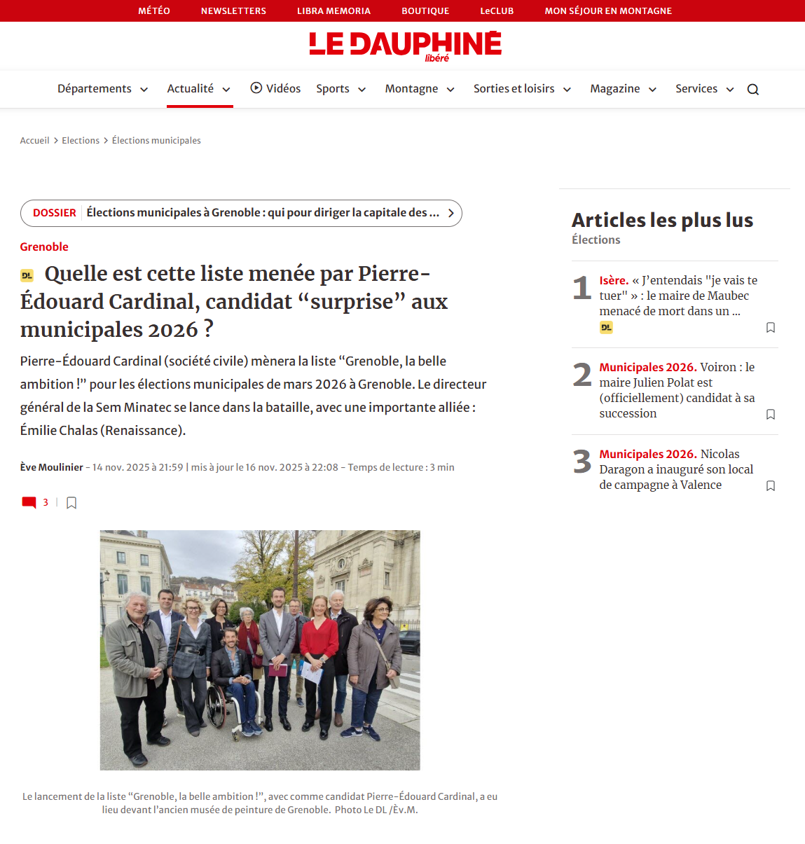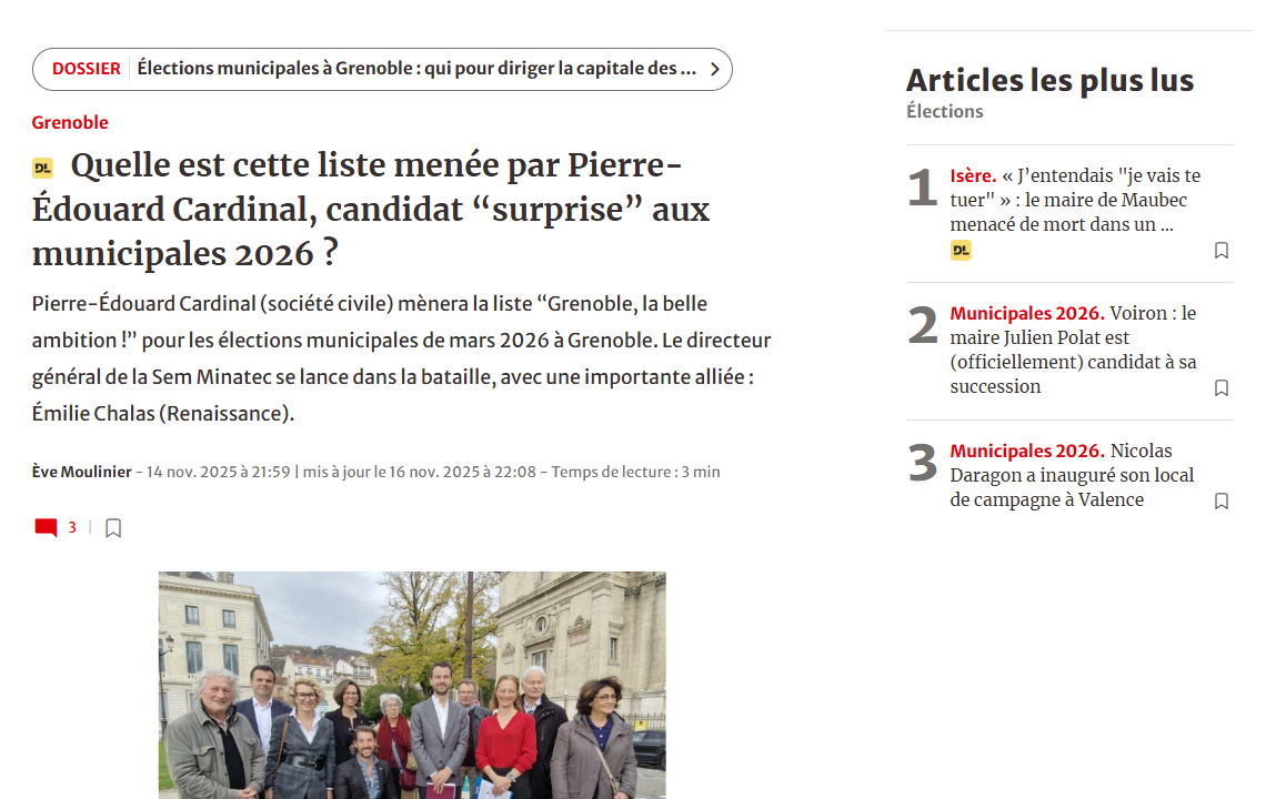 Le Dauphiné Libéré | Quelle est cette liste menée par Pierre-Édouard Cardinal, candidat “surprise” aux municipales 2026 ?